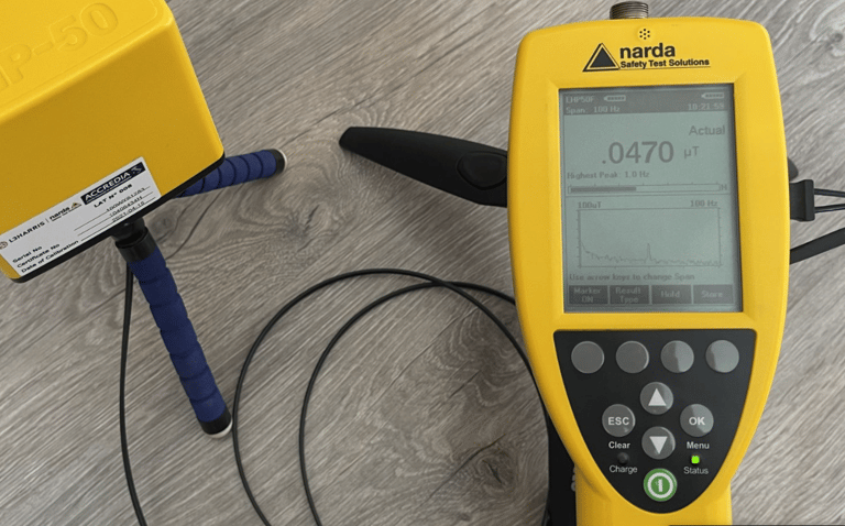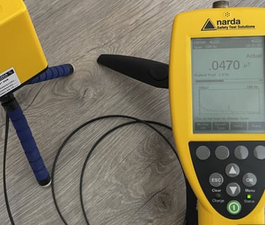 Dans un laboratoire accrédité fabriqué par la société américaine NARDA , avec des instruments de mesure calibrés et certifiés, nous mesurons les paramètres COMPLEXES de l'électrosmog à plusieurs points de mesure , qui sont les suivants : champ électrique, champ magnétique, densité de puissance à haute fréquence, rayonnement radioactif, distorsions pathogènes géo cosmiques: veine d'eau, champs magnétiques d'intersection de Hartmann